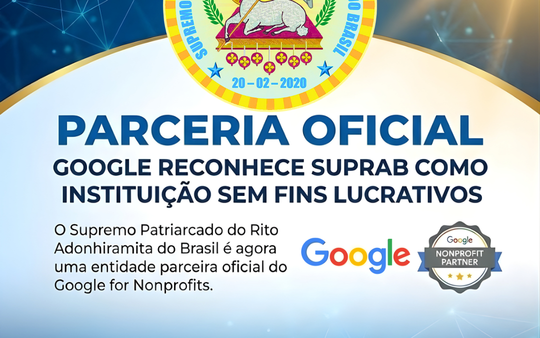 O Supremo Patriarcado do Rito Adonhiramita do Brasil (SUPRAB) deu um salto tecnológico significativo na data de hoje, 17 de dezembro de 2025, pois fomos oficialmente reconhecidos e aprovados pelo Google como uma entidade parceira do programa global “Google for Nonprofits”.